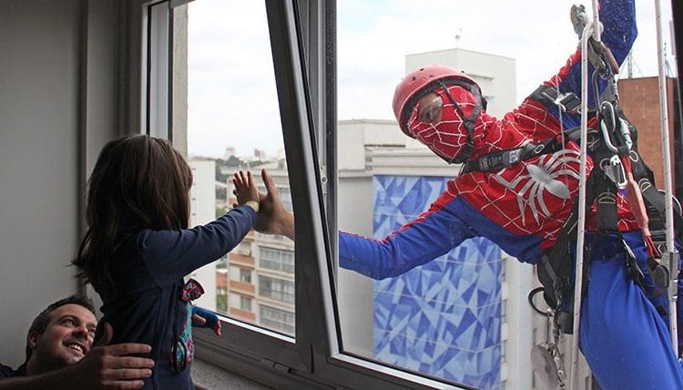 Até o dia 14 de outubro, das 9h às 17h, Batman, Flash, Homem de Ferro e Homem Aranha vão passar pelas janelas das unidades de internação